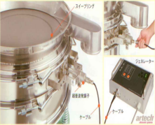 超聲波篩分系統(tǒng)由超聲波發(fā)生器、換能器、共振環(huán)組成。超聲波發(fā)生器產(chǎn)生高頻震蕩,由換能器轉(zhuǎn)換成高頻正弦形式的縱向震蕩波,這個震蕩波傳到共振環(huán)上使共振環(huán)產(chǎn)生共振,然后有共振環(huán)將振動均勻的傳輸至篩面,篩網(wǎng)上的物料在做低頻三次元振動的同時,疊加上超聲波振動效應(yīng),既可達(dá)到防止篩面網(wǎng)孔堵塞,又可提高篩分產(chǎn)量和質(zhì)量。